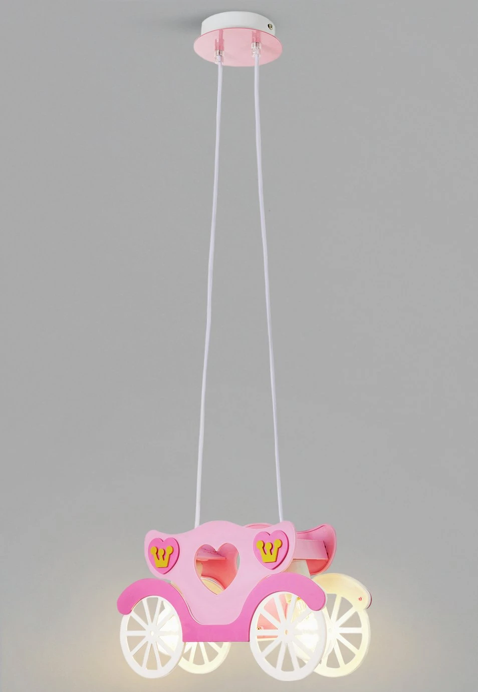Perfect for princess theme bedrooms, the Princess Carriage Ceiling Light is the ideal fit for kid's rooms. This ceiling pendant features a beautiful carriage design and projects a warm glow into the room. It also comes in a pink and white finish that is ideal for lighter colour schemes. Pink finish is ideal for lighter colour schemes.