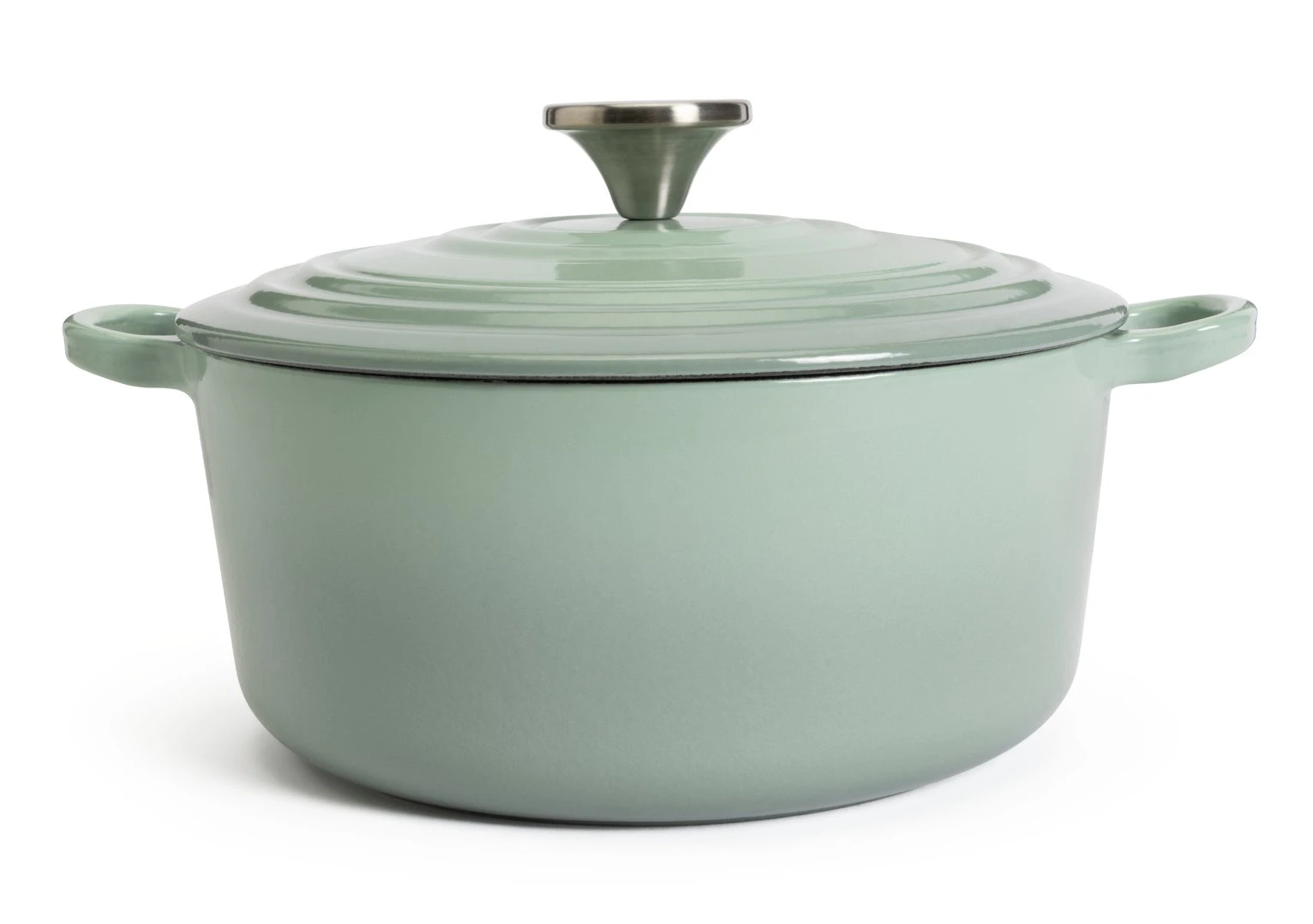 Feast your eyes on our enamel coated, cast iron casserole dish. It'll be your go to pot for all sorts of meals as it cooks evenly and retains heat for longer. Looks good too. In fact, it's handsome enough to take straight from the oven to the table.