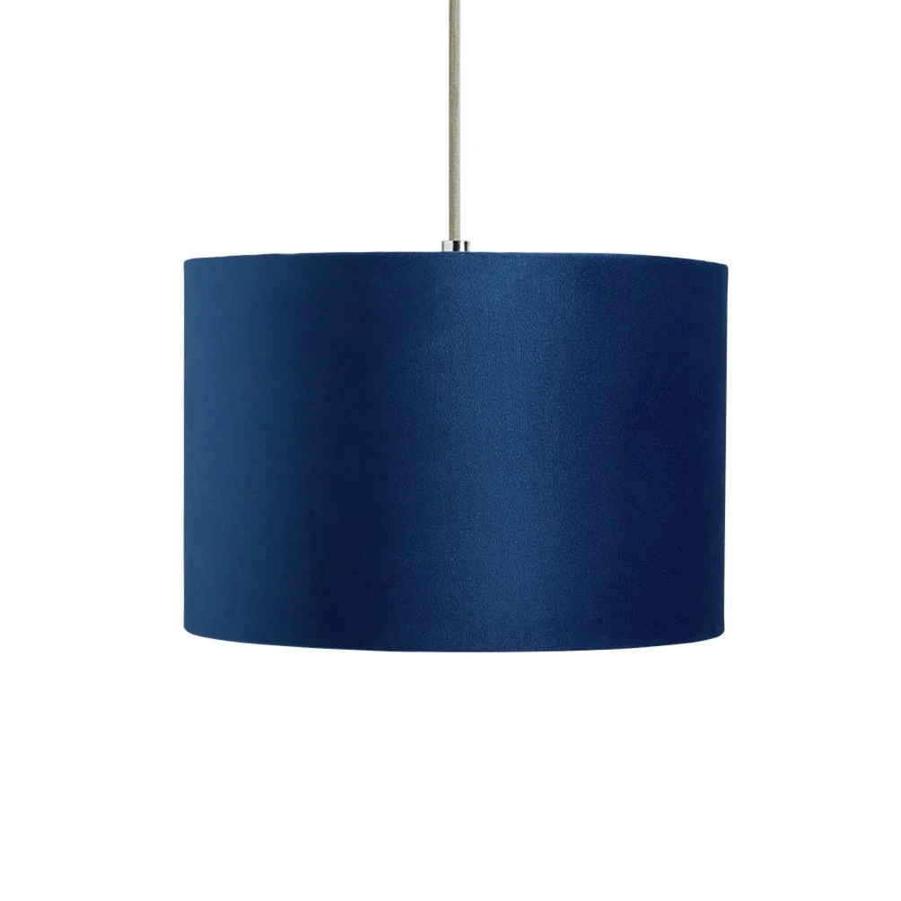 Lower the lights! This luxurious velvet shade in an elegant navy creates just the right mood for cosy evenings in. Sumptuous and indulgent, perfect if you're seeking a little Luxe sophistication. Our classic drum shape works three ways. Fit it as a ceiling shade in the lounge, to a lamp base by your bed or as a floor lamp to throw light on darker corners. Effortlessly diffuses the light to create a subtle, ambient glow. Heavenly!