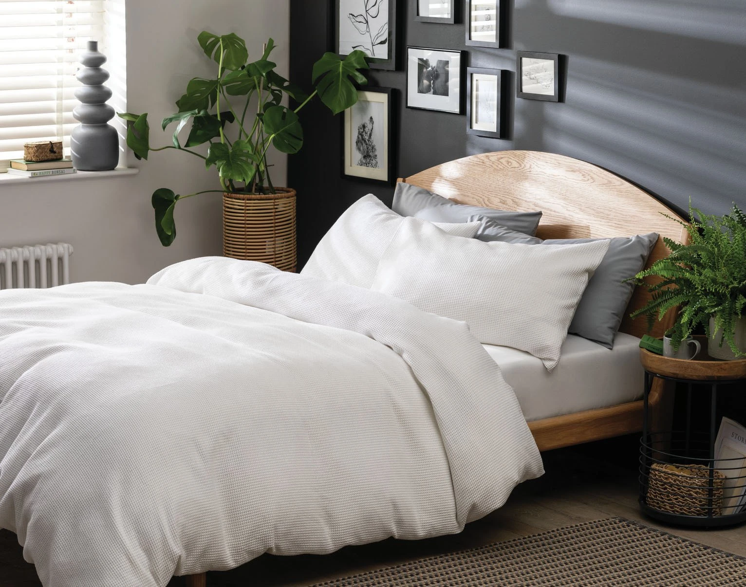Wonderfully waffly. Create a relaxing bedroom space with our welcoming waffle weave bedding. It's just the job for some dedicated lounging. Made in 100% cotton for a light, easy-care option, this tactile duvet adds a soft layer of sophistication to your room. Fully reversible, choose smooth or textured side up, to suit your mood. Great for good nights and marvellous mornings.