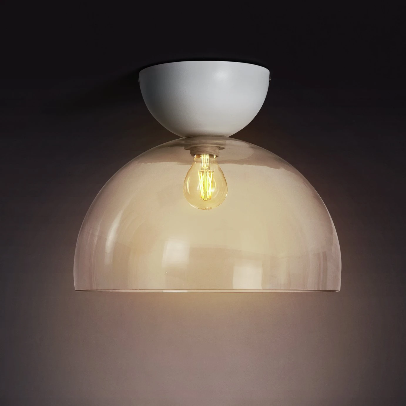 A modern twist on a vintage design and clearly a bright choice. Meet the Diabalo ceiling light. Crafted as a clear glass dome to expose your inner bulb. Watch it send a warm wash of light in all directions giving maximum illumination. The white metallic base reflects light further and forms a flush mount so prized in contemporary modern ceiling lighting. What's not to love.