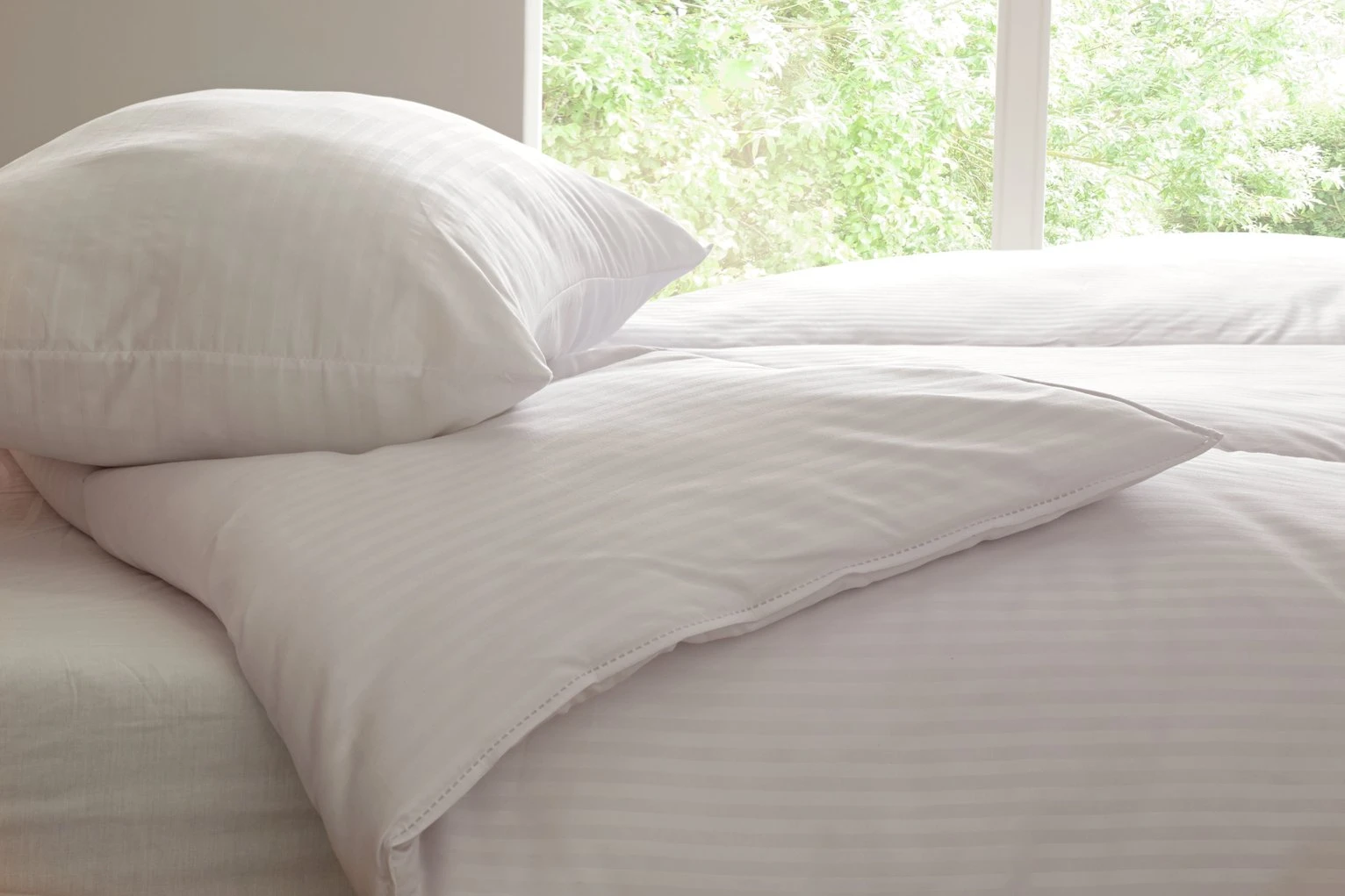 Love the feel of natural bedding but don't fancy feathers? Our Feels Like Down range is just the ticket. With a premium hotel quality embossed stripe cover and a smart stitch finish, it provides a real feeling of luxury. This 10.5 Tog duvet is perfect for year-round use and is filled with siliconised recycled polyester for a featherweight feel.