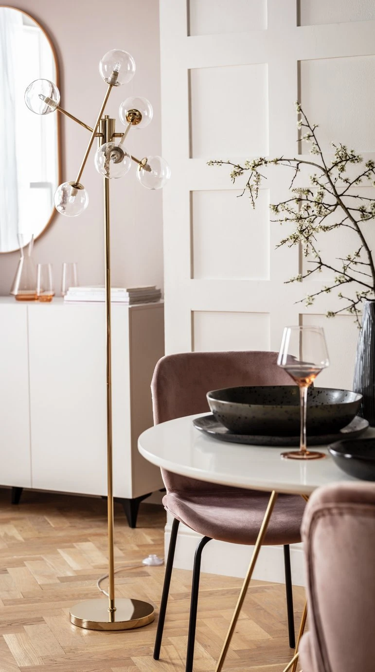 Out of this world. The Sputnik floor lamp is a real statement piece with genuine satellite-like charm. Finished in American gold with 6 clear glass shades and adjustable arms, this unique lamp creates a soft, warm ambience. It's perfect for brightening up dark corners and the in-line switch makes it easy to turn off and on. The generous 1.5 metre cord length means this lamp can be placed in spaces others can't reach. We have lift off.