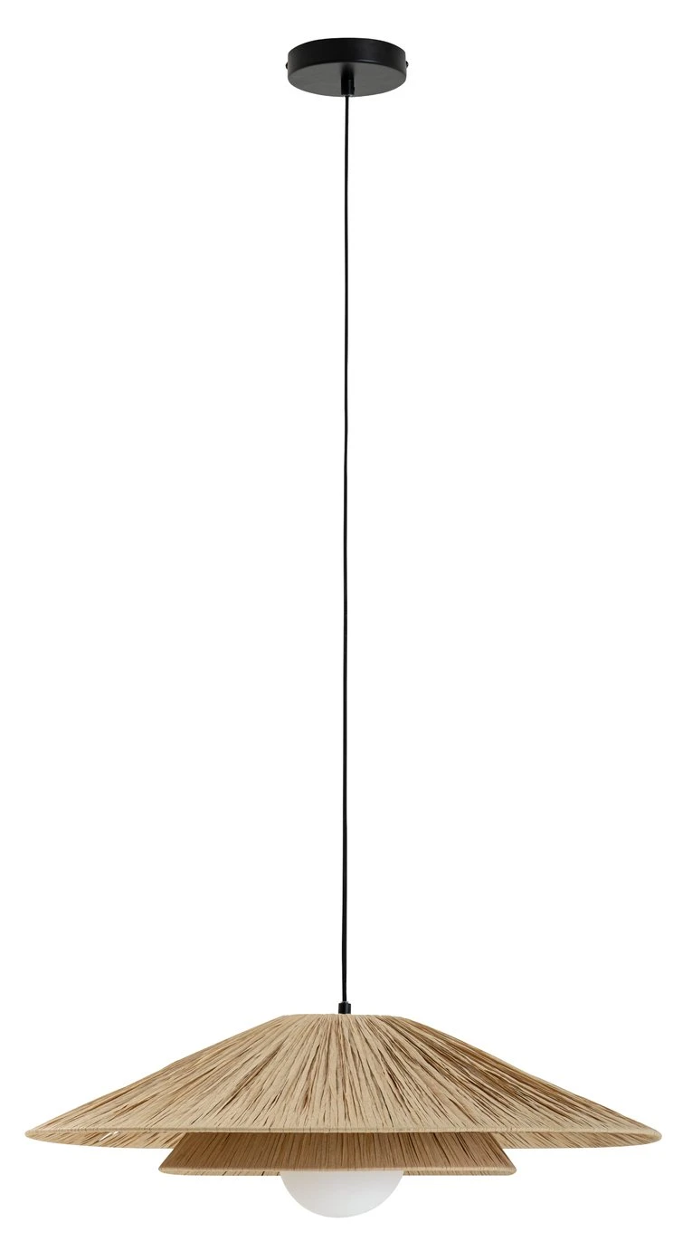 A shade above. Our two-tier Guii ceiling light lends an organic ambience to your lounge or kitchen. Naturally lightweight raffia meets a strong, metal frame to create this tastefully textured design. This pretty pendant is ideal for accent lighting and low ceilings. Can be used with a dimmer switch for your choice of bright or mood lighting. Simply radiant.