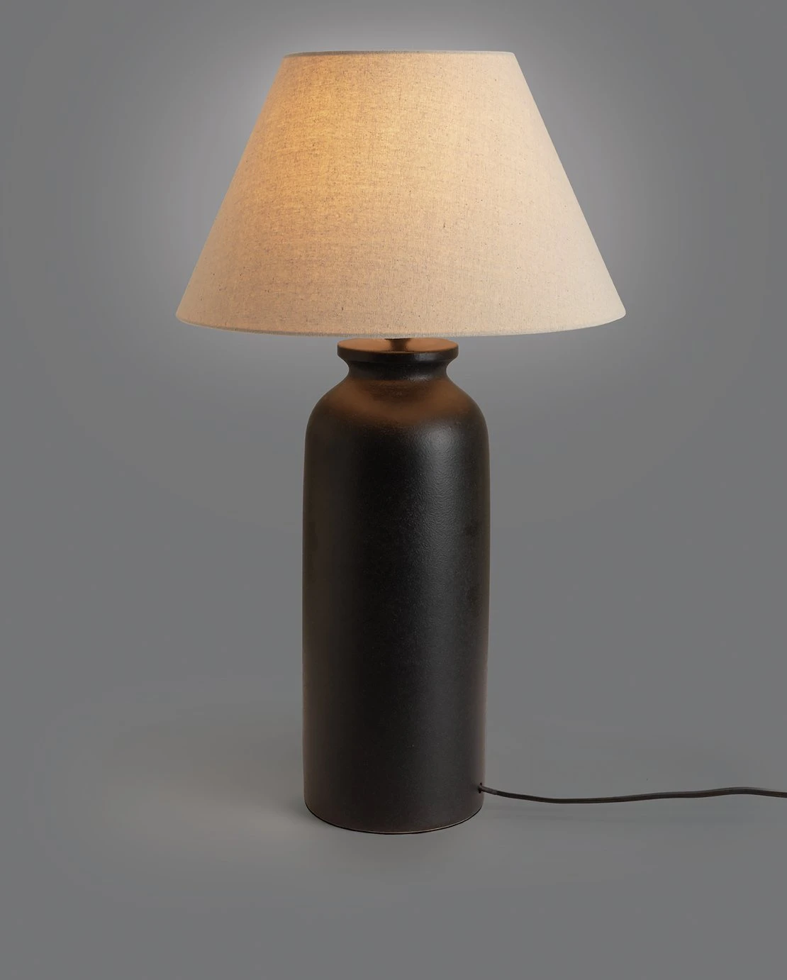 Take a shine to matte black. Our Hashi canister-shaped lamp is a modern take on traditional style. A rough, rustic glaze gives the ceramic base a tactile texture. Paired with its neutral shade it has a contemporary feel. Pop it on your sideboard with some prints and plants for a look that's right on trend. Irresistibly tall dark and handsome.