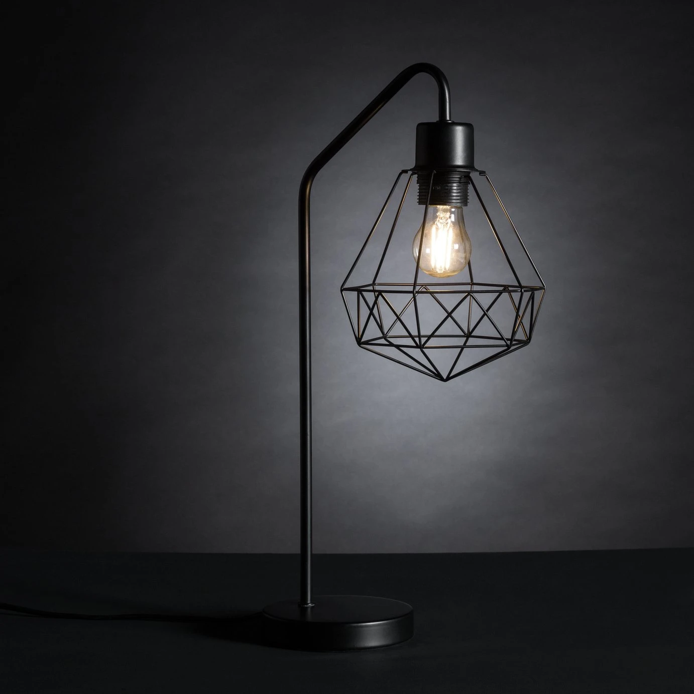 Get an industrial vibe and architectural looks all in one with our cool Kanso table lamp. What a smart choice with a geometric cage for a shade. Looks good on or off. Day or night. A modern classic with a painted, matt black stand. Stunning. Simple. Versatile for living room, bedroom or even study.