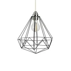 Geometric design makes a bold entrance with this strking pendant shade. With its black steel finish it celebrates the brilliance of feature bulbs, exposing the bulb for a clean understated look. Designed to cast bright light across your room, the Kanso wire pendant shade is a must for any modern on-trend space. See the rest of the Kanso collection to complete the look.