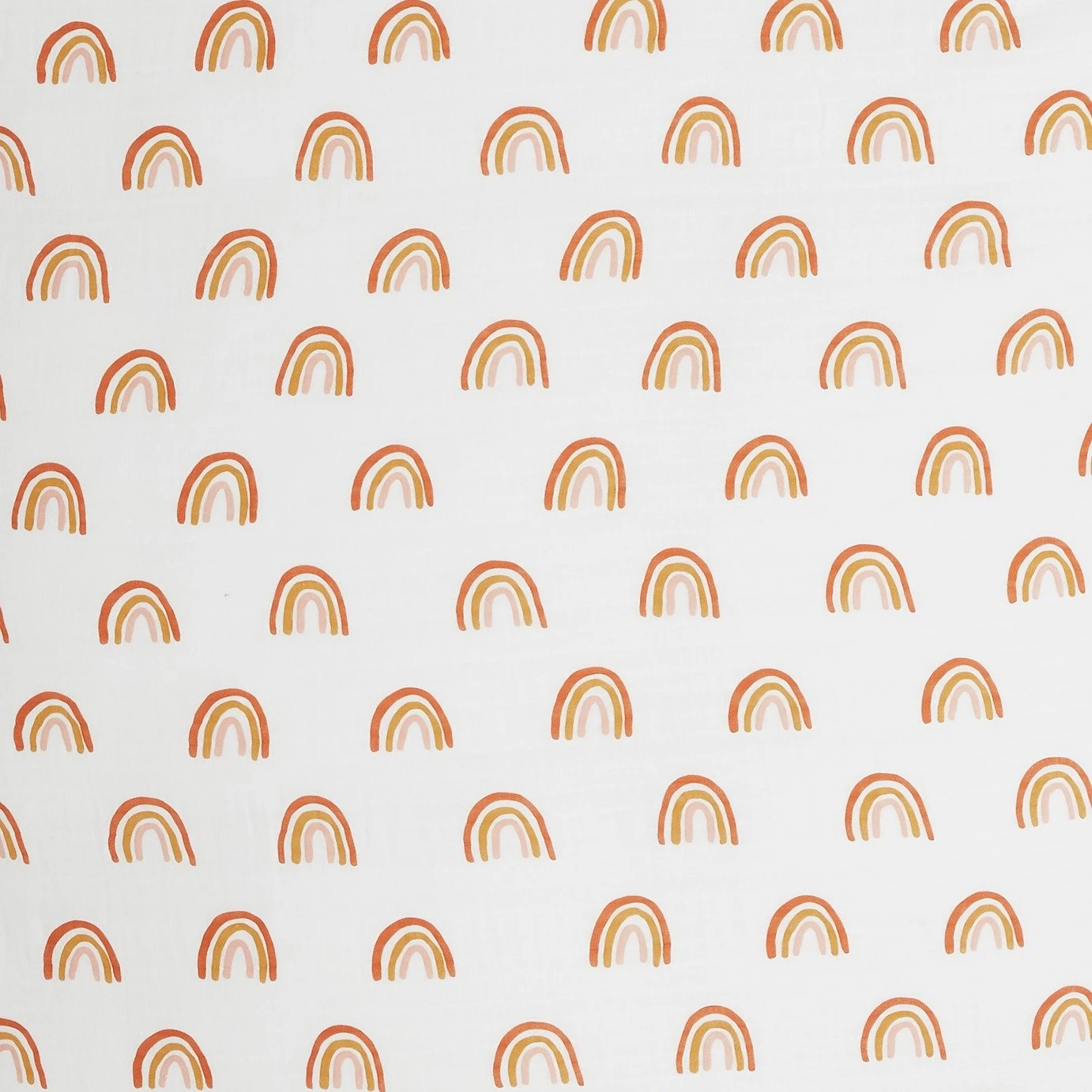 Our funky, modern toddler bed set will brighten up rainy days, sunny days and every day. With a simple, orange rainbow design on a crisp, white background, it's a breath of fresh air to a child's bedroom or your guest bedroom.