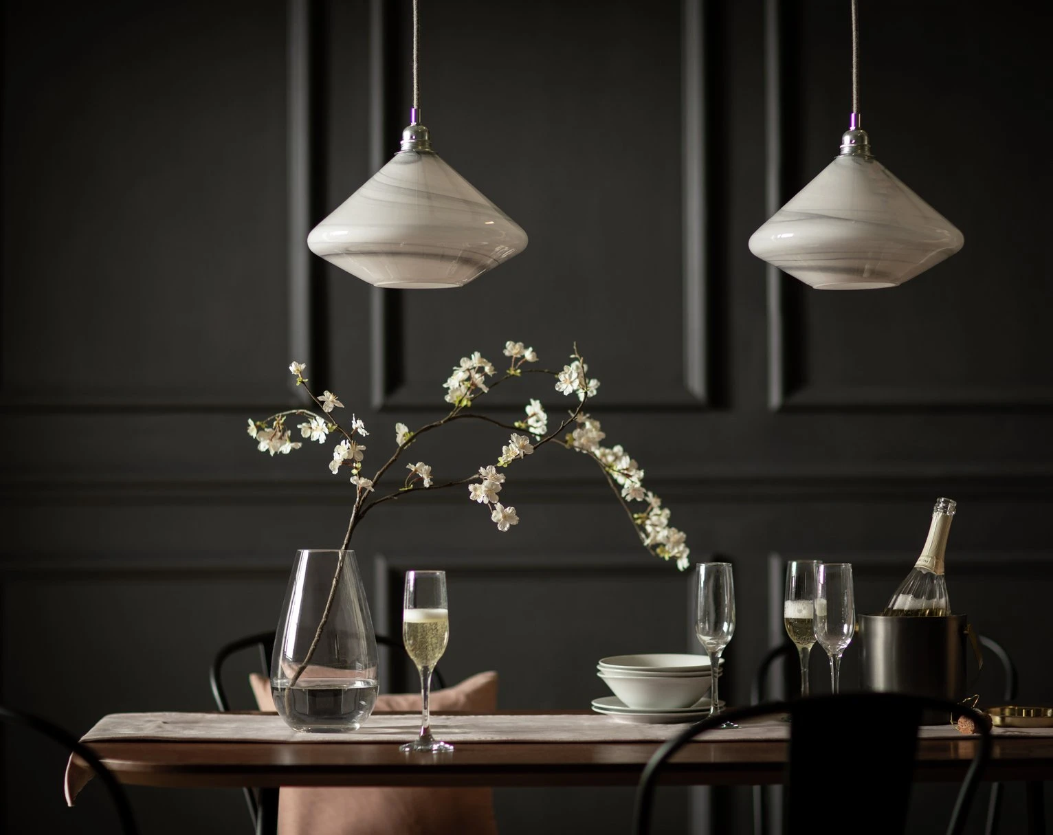 A drop of luxe lighting. With its gently curved silhouette, marble exterior and matt black detailing, there's a lot to love about Lati. And each one is subtly unique. The marbling effect is applied to the glass by hand, so no 2 shades will share the exact pattern. Very cool. Hang it low over your dining table or breakfast bar for a touch of laidback glamour.