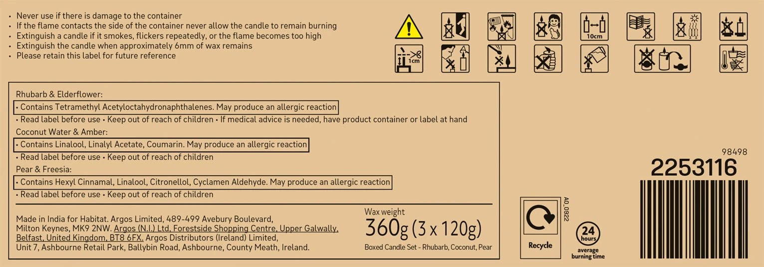 - Pear & Freesia, Rhubarb & Elderflower, Coconut Water & Amber scent.