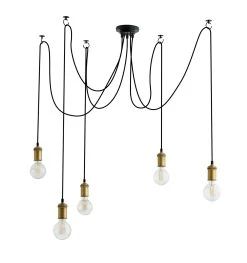 Make a statement this season. Our Nyos spider chandelier is bang on trend with its industrial metallic detailing and exposed filament bulbs. Inject urban appeal into your living room or kitchen in a flash with this dramatic vintage style ceiling light. With an adjustable drop, you choose where these luxurious lights sit best. Lower over a dinner table for a more intimate atmosphere or higher up for busier areas. So versatile, so elegant, so very cool.