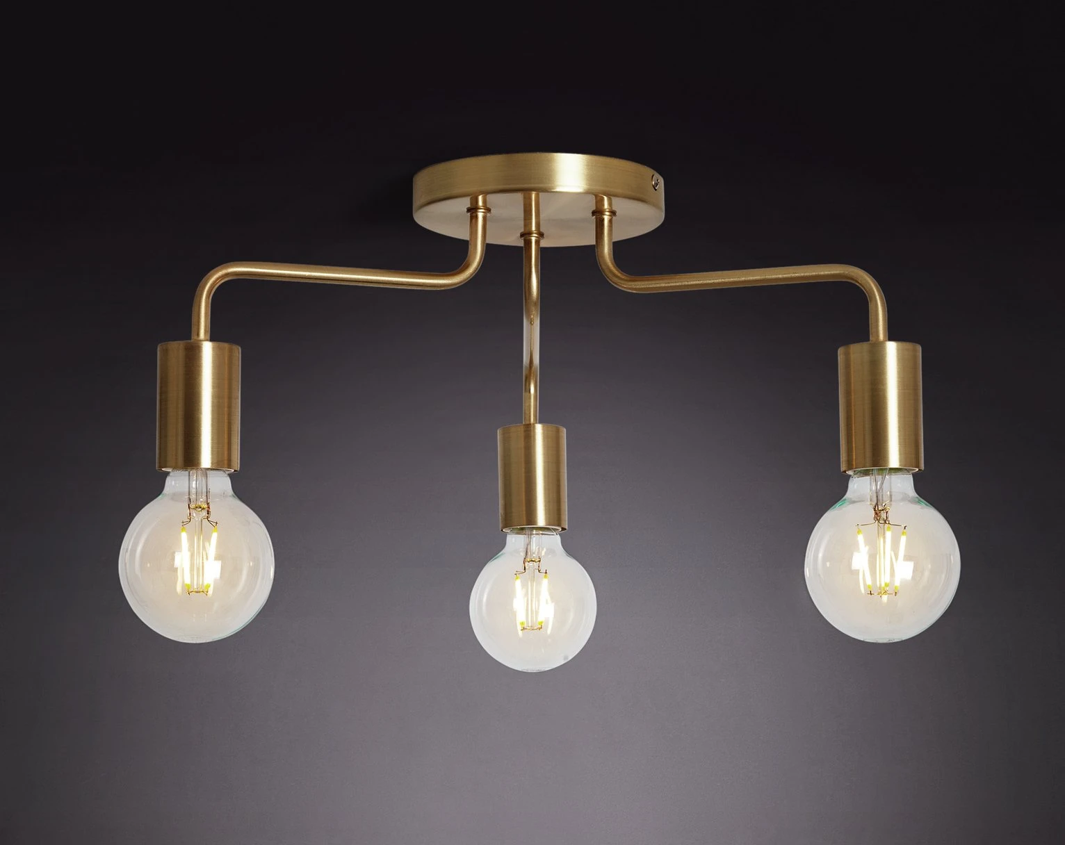 Bright and beautiful. This trio of stunning filament bulbs brings a welcome brightness to your modern decor. Brushed brass blended with exposed bulb lamps make a striking statement. Stripped back and effortlessly cool. Perfect for your living room or kitchen, illuminates every corner to give a bright and open feel. Fits flush to the ceiling so takes up little space.