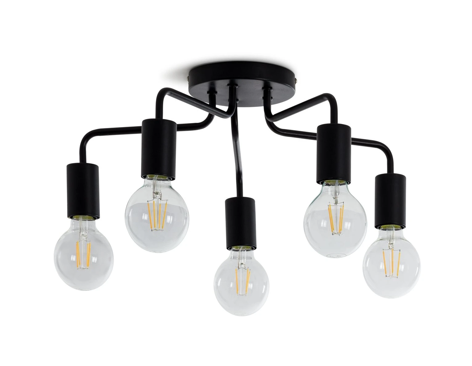 Sleek matte black meets minimalist design for a modern vibe. Clean and crisp, this black Rayner 5 light ceiling light will give your home an instant style uplift. Designed to shine light across the entire room, this is the perfect ceiling light for rooms that want a bright and open feel. Bulbs included.