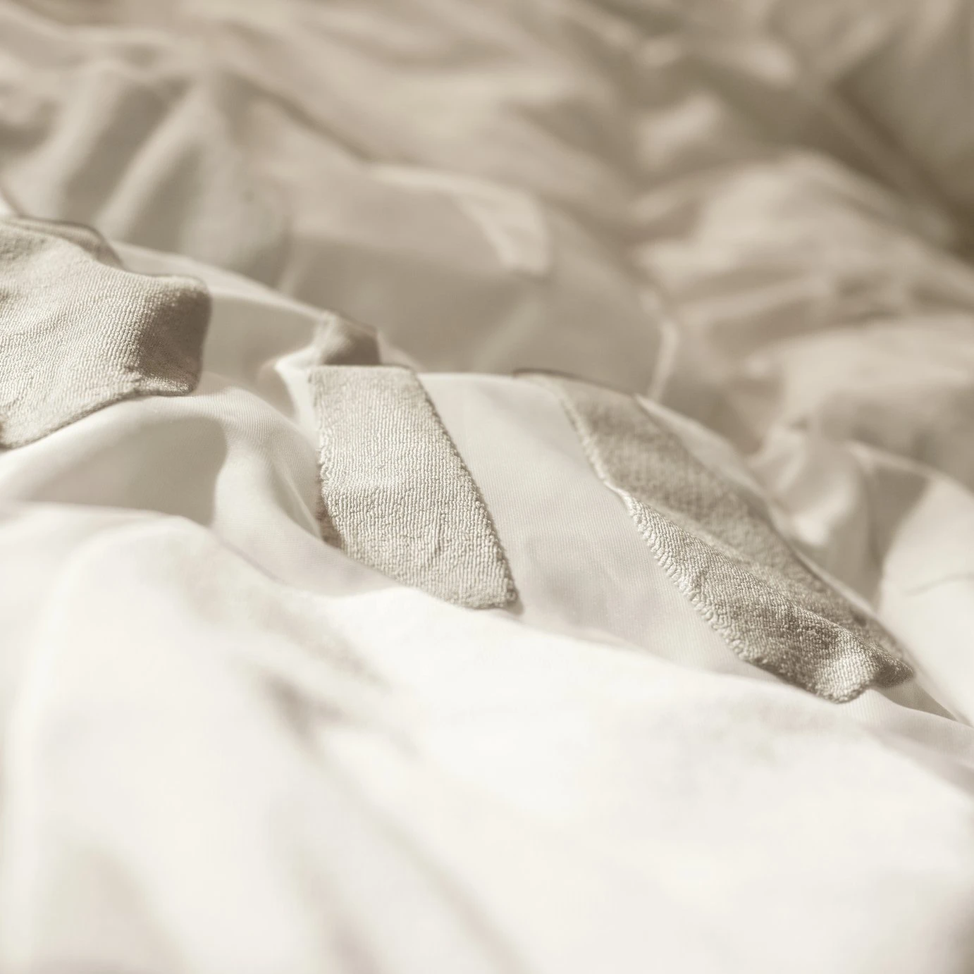 Shape up your sleep space. Our jacquard single bedding set is a medley of calm, contemporary and quirky. With its natural palette and modern geo shapes, it's a unique design with lots of personality. The distinctive velvet panels have a rich luxurious texture. Very snuggly cosy. Feeling drowsy yet?