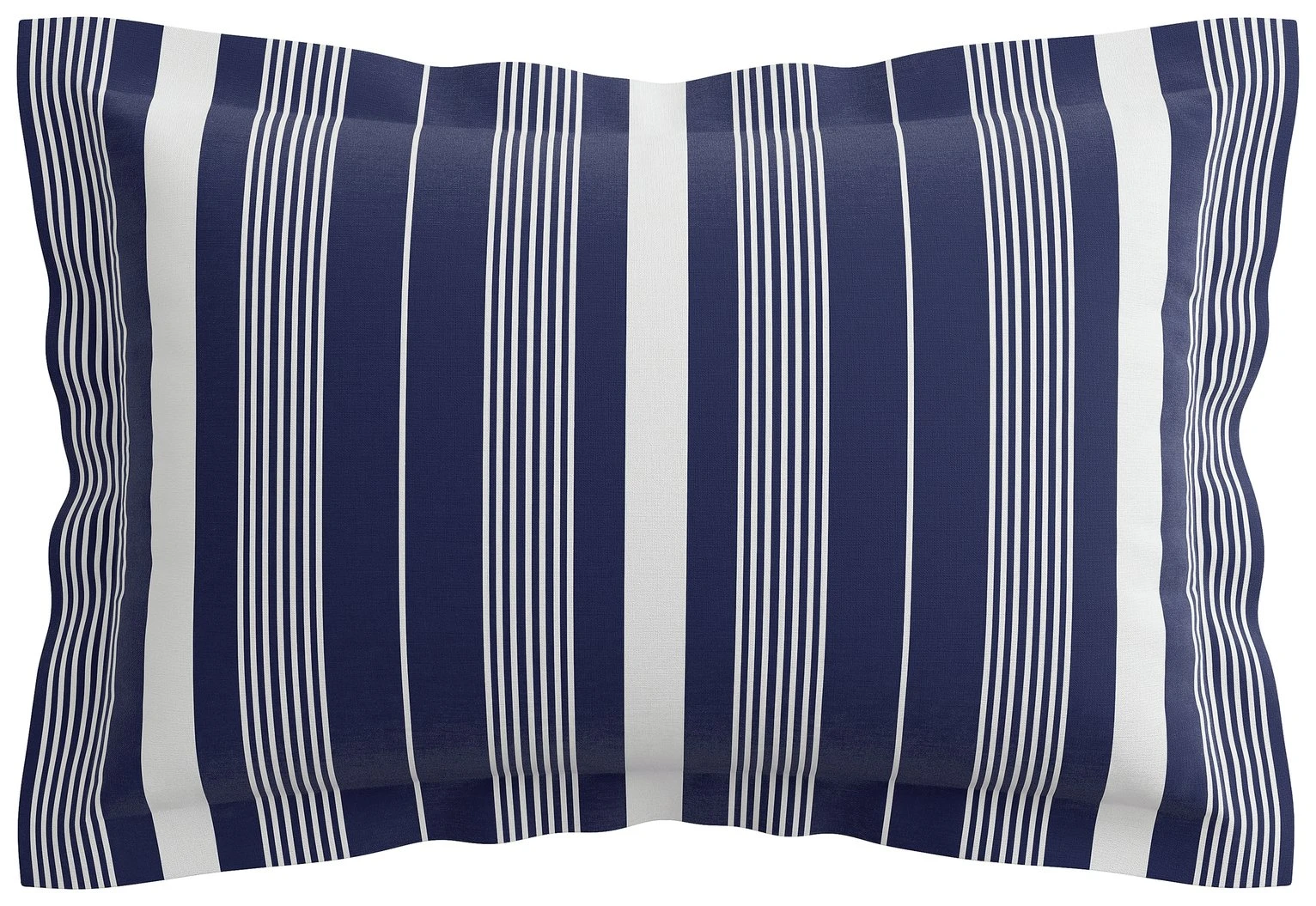This bold, vertical stripe celebrates all things nautical; inherently chic the characteristic navy and white colourway evokes memories of sandy coves and bays, salty air and fresh summer breezes. Printed on cotton, the reverse print is a smart geometric pattern. Accessorise with warm layers that offer the perfect embrace.
