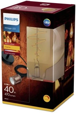 Philips LED Filament E27 6.5W (40W) Dim Giant Bulb + Cord