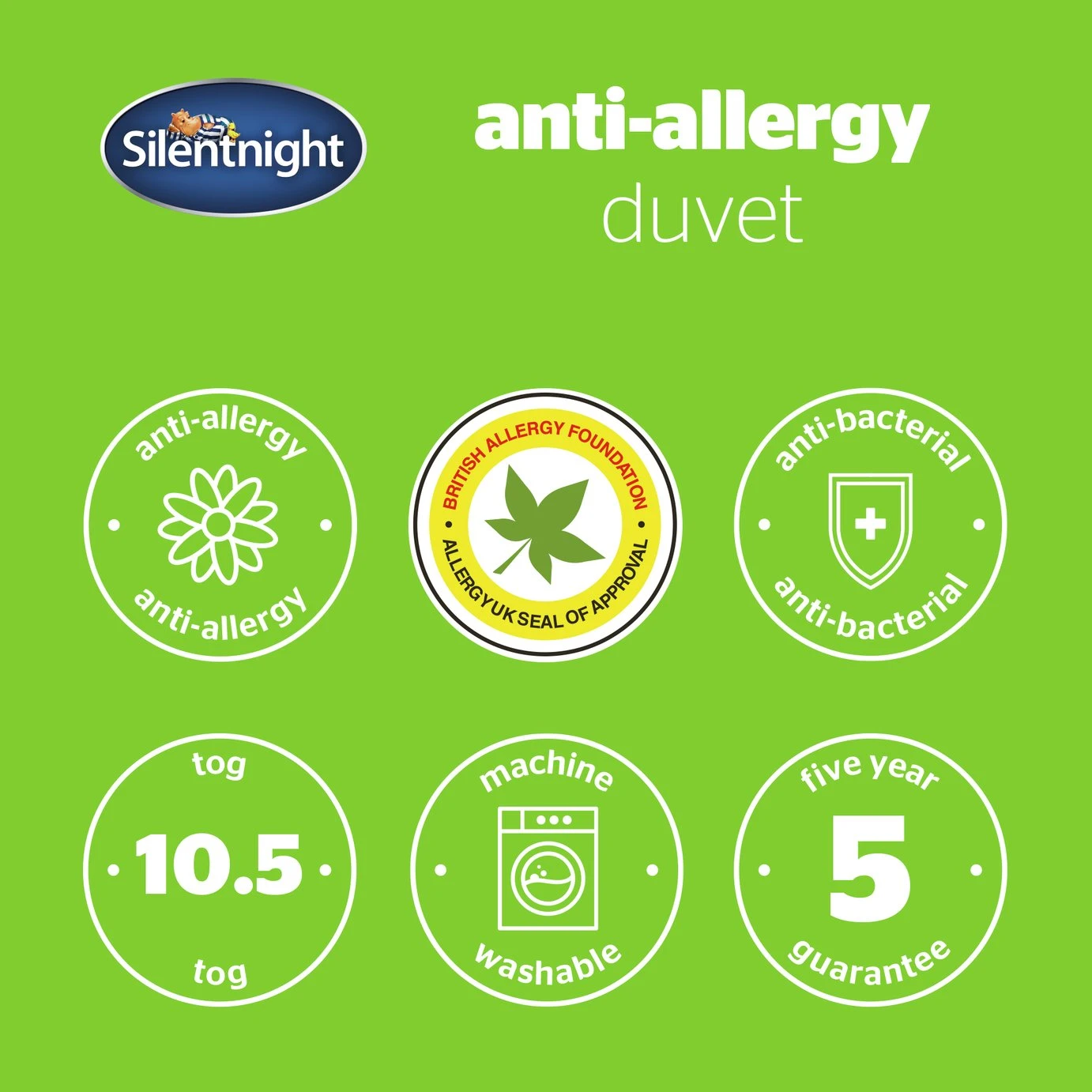 The Silentnight anti-allergy duvet is filled with anti-allergy hollowfibre that actively protects your duvet from bacteria and dust mites to help prevent allergies. Our anti-allergy fibres are approved by the British Allergy Foundation, which means they have the ultimate seal of approval. It is also machine washable at 40C which means you can keep your duvet fresh and clean for longer.