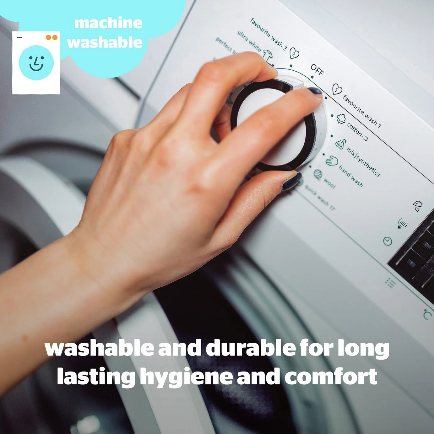 - Suitable for washing in a standard size washing machine.