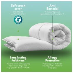 At Slumberdown we believe everybody deserves a good nights sleep. The Slumberdown Wonderful Wool medium weight duvet has a soft 233 thread count cotton cover and is filled with our beautifully soft 100% British wool. Wool is temperature regulating allowing you stay cool in the summer and warm in the winter, making it perfect for any season. The duvet is fully breathable, offers anti allergy, anti bacterial protection and its hypoallergenic. What's more the duvet is self-cleaning so a regular airing will keep it fresh. Made in the UK.