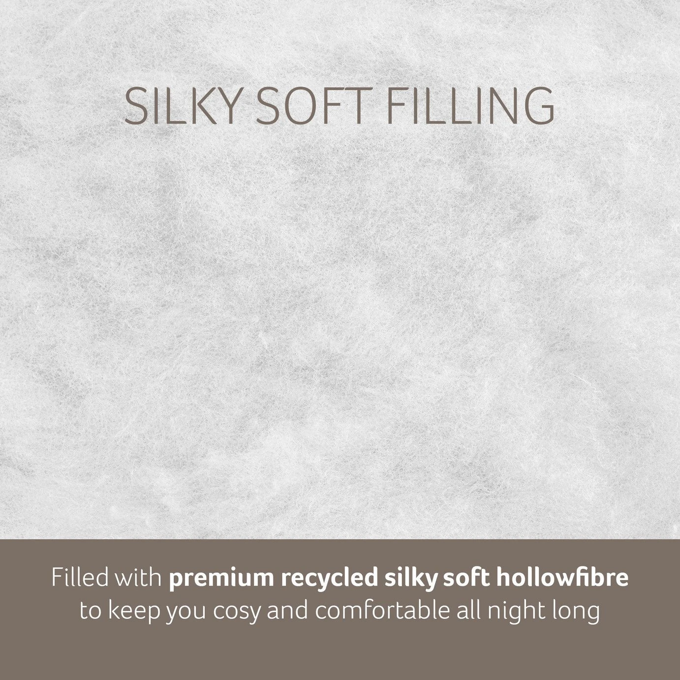 The Snuggledown Luxurious Hotel 10.5 Tog Duvet offers hotel quality luxury in the comfort of your own home. With wonderfully soft-touch embossed covers and silky soft hollowfibre filling, you get that indulgent hotel luxury feeling night after night. Offering unsurpassed comfort, this 10.5 Tog duvet is perfect for all year round use, so you can sleep easy whatever the season. Made in the UK, Packaging contains 30% recycled content minimum.